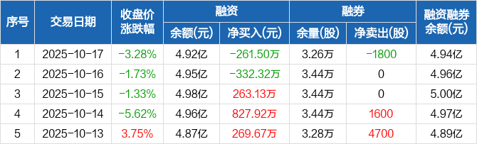 富乐德:融资净偿还261.5万元,融资余额4.92亿元(10-17)