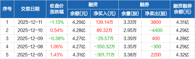 富乐德:融资净买入139.14万元,融资余额4.29亿元(12-11)