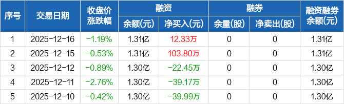 卓创资讯:融资净买入12.33万元,融资余额1.31亿元(12-16)