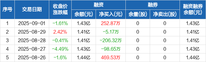 真兰仪表:融资净买入252.87万元,融资余额1.43亿元(09-01)
