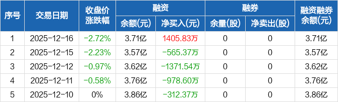 美利信:融资净买入1405.83万元,融资余额3.71亿元(12-16)