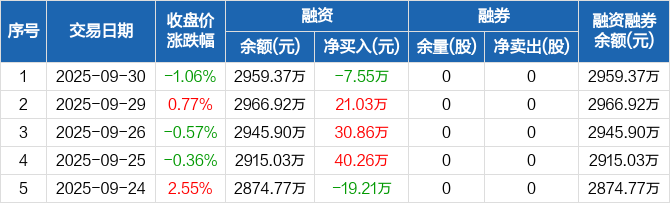 万得凯:融资净偿还7.55万元,融资余额2959.37万元(09-30)