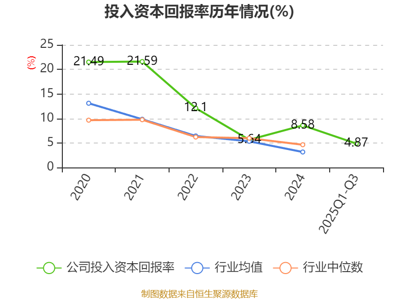 盈利能力方面, 2025年前三季度公司加权平均净资产收益率为5.29%,同比下降2.53个百分点。公司2025年前三季度投入资本回报率为4.87%,较上年同期下降1.78个百分点。