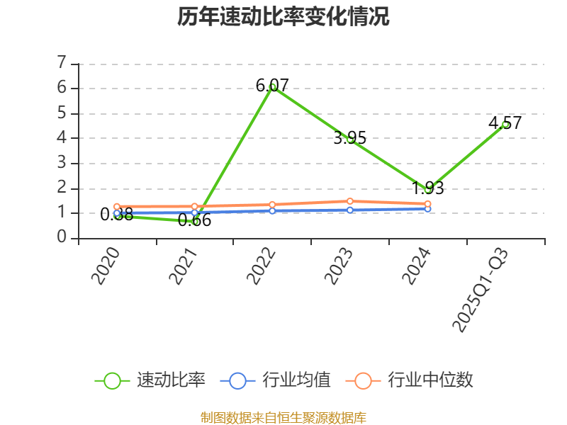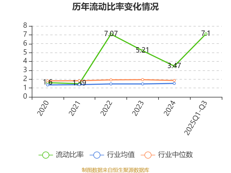2025年前三季度,公司流动比率为7.1,速动比率为4.57。