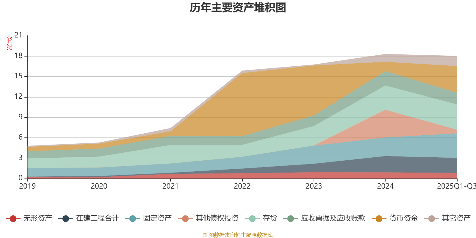 资产重大变化方面,截至2025年三季度末,公司其他债权投资较上年末减少86.94%,占公司总资产比重下降19.31个百分点;货币资金较上年末增加186.09%,占公司总资产比重上升14.21个百分点;固定资产较上年末增加32.11%,占公司总资产比重上升5.11个百分点;其他流动资产较上年末增加1005.78%,占公司总资产比重上升3.8个百分点。