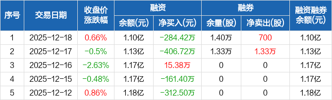 昆船智能:融资净偿还284.42万元,融资余额1.1亿元(12-18)
