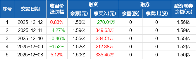 智立方:融资净偿还270.01万元,融资余额1.56亿元(12-12)