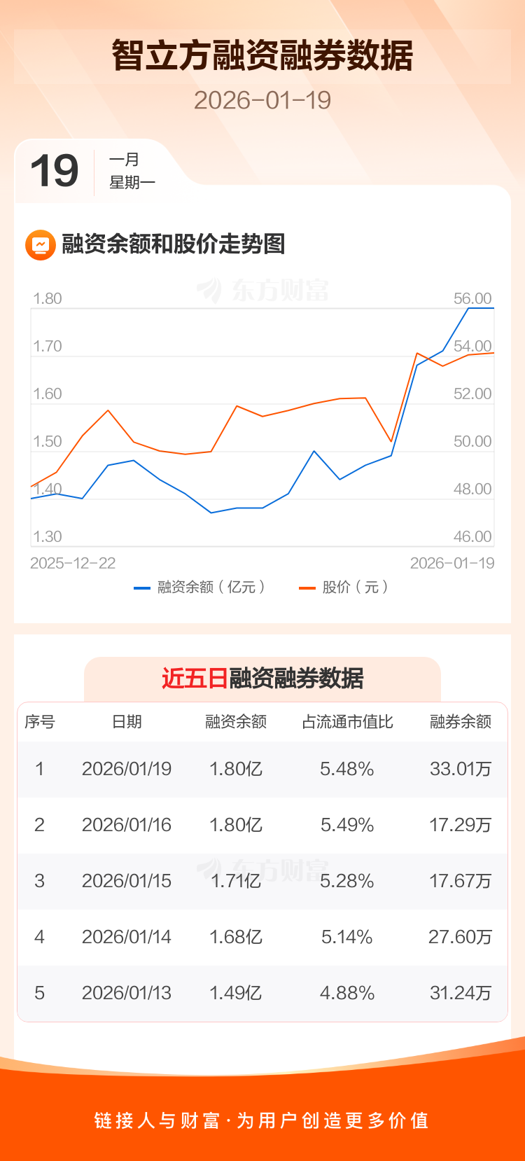 交易所最新数据显示,智立方于2026年1月19日获融资买入2345.37万元,融资偿还2338.97万元,当日融资净买入6.4万元。目前,该股融资余额1.80亿,占流通市值比例为5.48%。