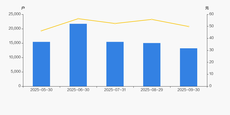 截至2025年9月30日,公司最新总股本为8800万股,其中流通股本为3700万股。户均持有流通股数量由上期的2461股上升至2803股,户均流通市值13.98万元。