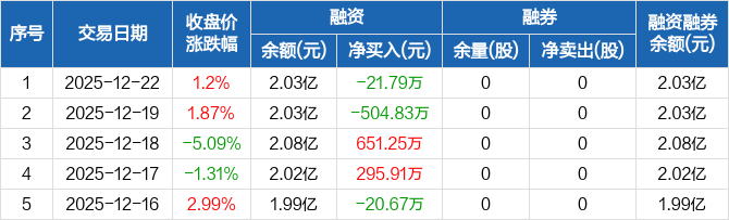 威士顿:融资净偿还21.79万元,融资余额2.03亿元(12-22)