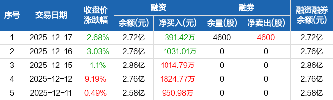 唯特偶:融资净偿还391.42万元,融资余额2.72亿元(12-17)