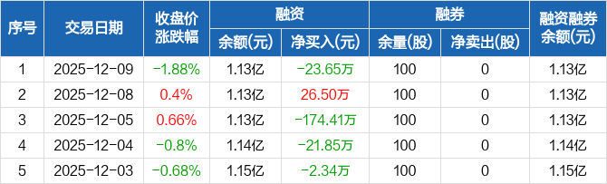 绿通科技:融资净偿还23.65万元,融资余额1.13亿元(12-09)