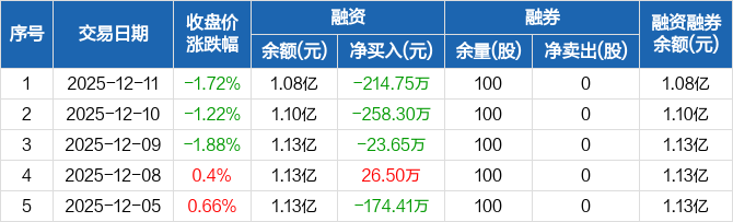 绿通科技:融资余额1.08亿元,创近一年新低(12-11)