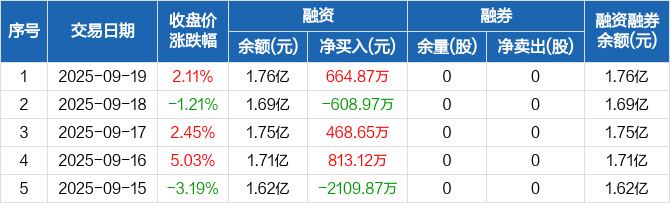 捷邦科技:融资净买入664.87万元,融资余额1.76亿元(09-19)