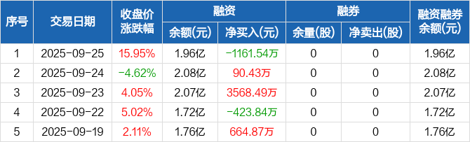 捷邦科技:融资净偿还1161.54万元,融资余额1.96亿元(09-25)