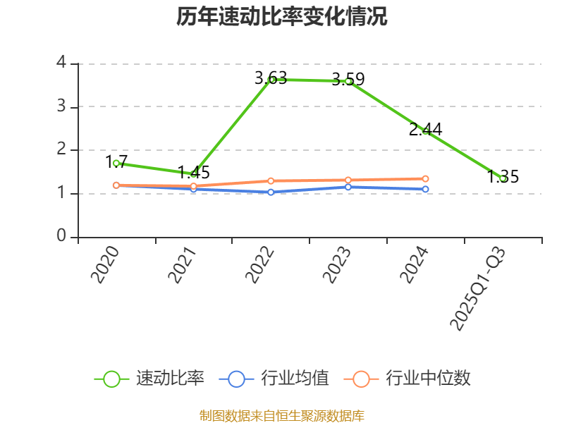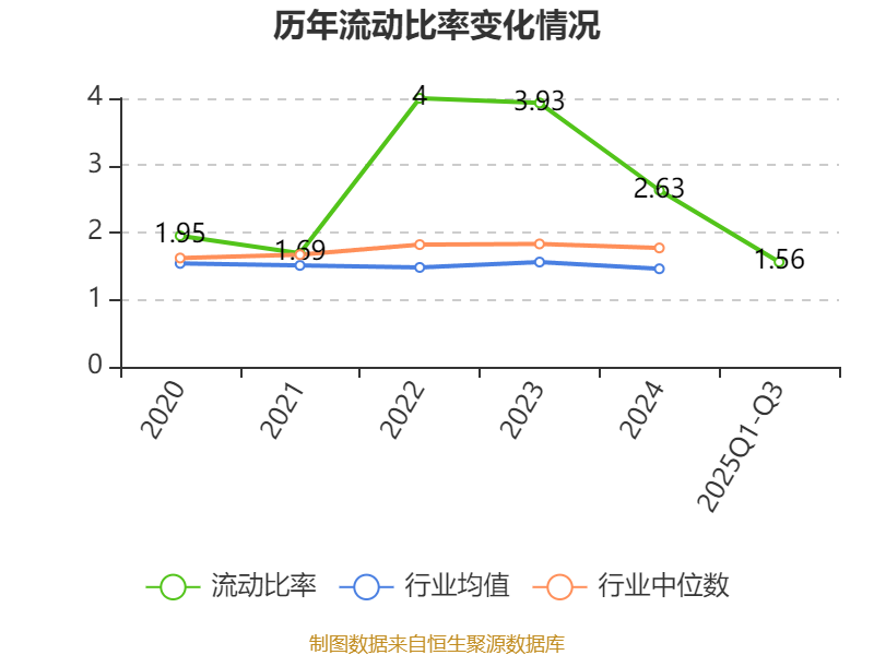 2025年前三季度,公司流动比率为1.56,速动比率为1.35。