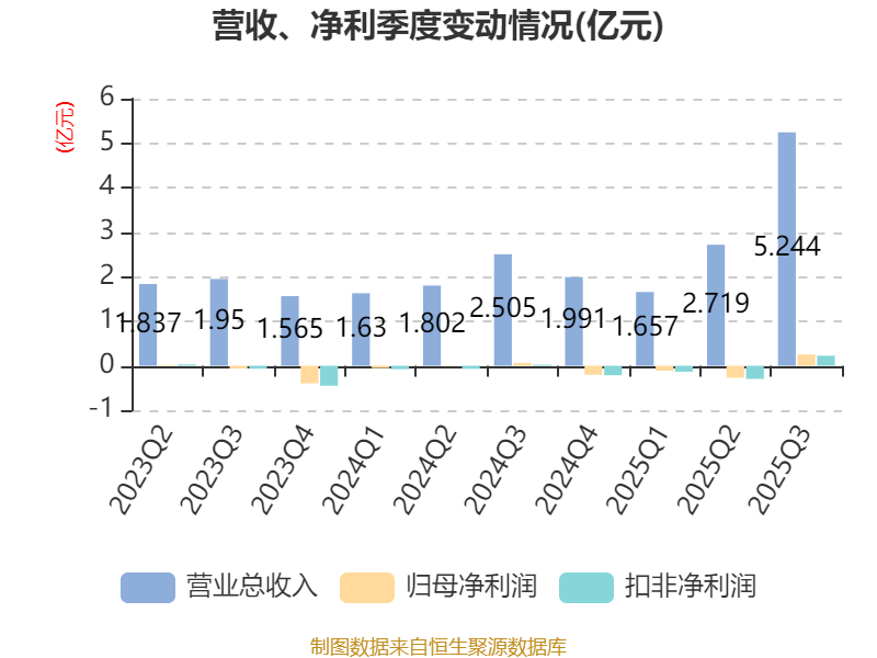 2025年前三季度,公司经营活动现金流净额为-1.37亿元,同比减少1.39亿元;筹资活动现金流净额4.2亿元,同比增加4.37亿元;投资活动现金流净额-3.54亿元,上年同期为-1.38亿元。