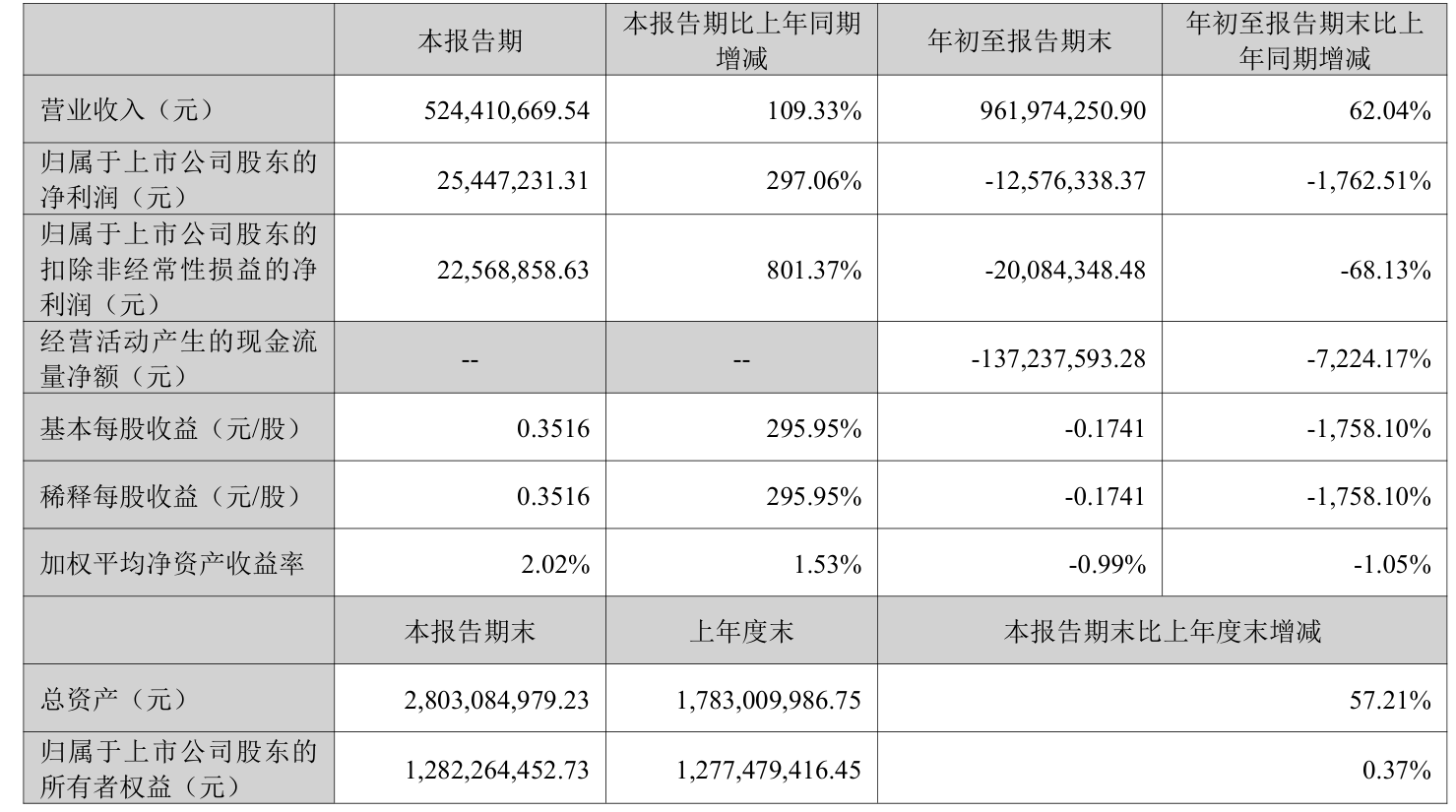 中证智能财讯捷邦科技(301326)10月30日披露2025年第三季度报告。前三季度公司实现营业总收入9.62亿元,同比增长62.04%;归母净利润亏损1257.63万元,上年同期盈利75.65万元;扣非净利润亏损2008.43万元,上年同期亏损1194.58万元;经营活动产生的现金流量净额为-1.37亿元,上年同期为192.64万元;报告期内,捷邦科技基本每股收益为-0.1741元,加权平均净资产收益率为-0.99%。
