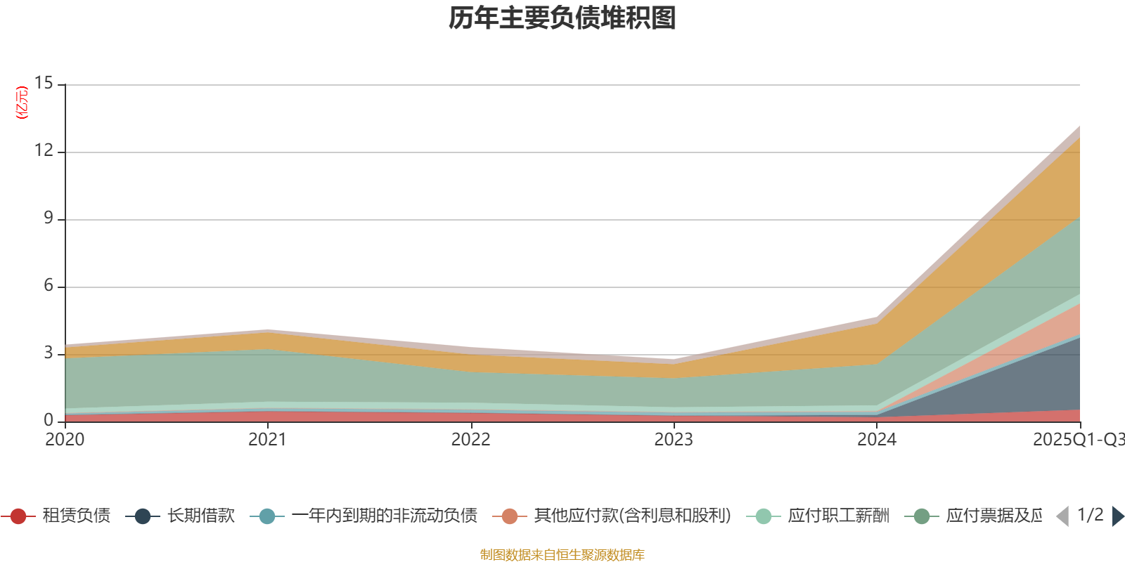 负债重大变化方面,截至2025年三季度末,公司长期借款较上年末增加3100.56%,占公司总资产比重上升10.86个百分点;其他应付款(含利息和股利)较上年末增加3834.54%,占公司总资产比重上升4.69个百分点;短期借款较上年末增加95.08%,占公司总资产比重上升2.44个百分点;应付票据及应付账款较上年末增加88.33%,占公司总资产比重上升2.03个百分点。