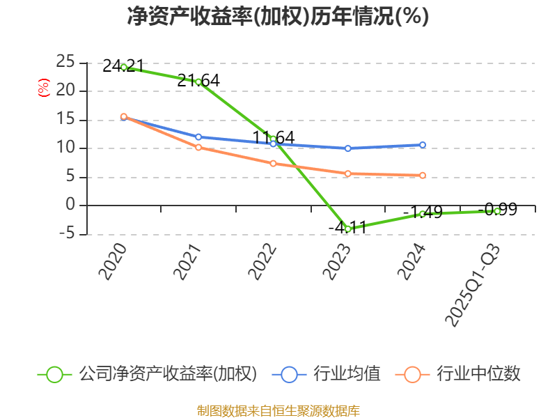 盈利能力方面, 2025年前三季度公司加权平均净资产收益率为-0.99%,同比下降1.05个百分点。公司2025年前三季度投入资本回报率为1.72%,较上年同期上升1.67个百分点。