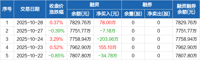 维峰电子:融资净买入78万元,融资余额7829.76万元(10-28)