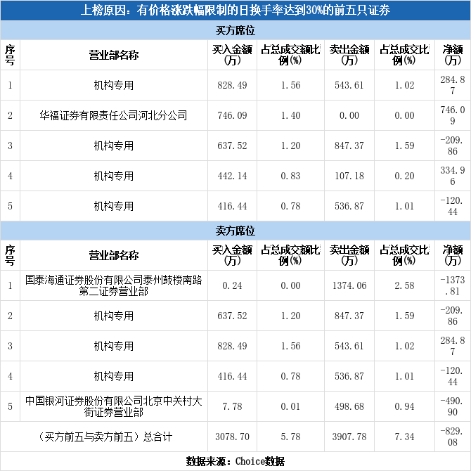 龙虎榜数据显示,今日共7个机构席位出现在龙虎榜单上,分别位列买一、买三、买四、买五、卖二、卖三、卖四,合计净买入289.54万元,占该股今日总成交额的0.54%。除此之外还有中兴通讯、永辉超市、正邦科技等34只个股榜单上出现了机构的身影,其中14家呈现机构净买入,获净买入最多的是中兴通讯,净买额为6.32亿元;20家呈现机构净卖出,其中遭净卖出最高的为永辉超市,净卖额为3.95亿元。