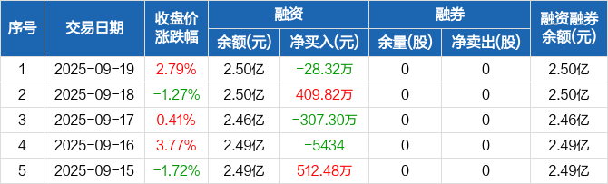 熵基科技:融资净偿还28.32万元,融资余额2.5亿元(09-19)
