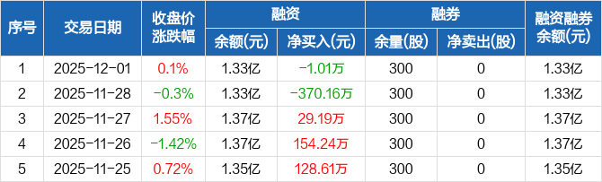 德尔玛:融资净偿还1.01万元,融资余额1.33亿元(12-01)