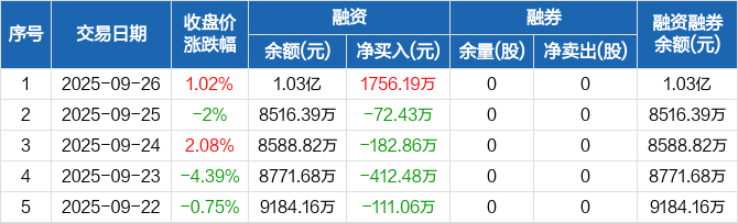 诺思格:融资净买入1756.19万元,融资余额1.03亿元(09-26)