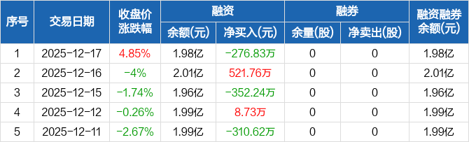 凯格精机:融资净偿还276.83万元,融资余额1.98亿元(12-17)