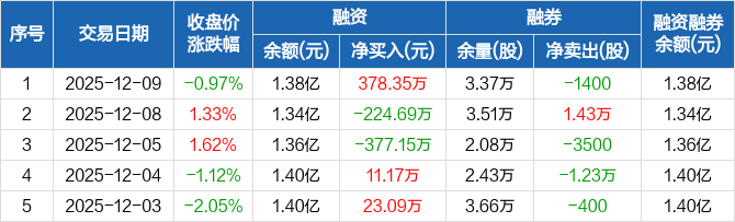 通行宝:融资净买入378.35万元,融资余额1.38亿元(12-09)