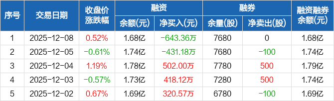 蓝箭电子:融资净偿还643.36万元,融资余额1.68亿元(12-08)