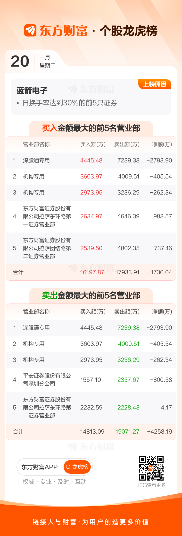 蓝箭电子(301348)龙虎榜数据(01-20)