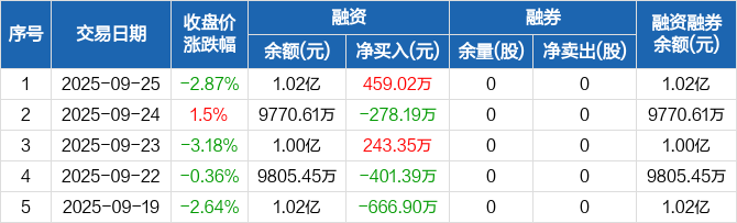 信德新材:融资净买入459.02万元,融资余额1.02亿元(09-25)