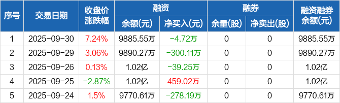 信德新材:连续3日融资净偿还累计344.08万元(09-30)