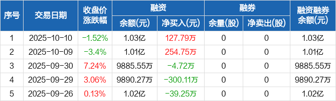 信德新材:融资净买入127.79万元,融资余额1.03亿元(10-10)