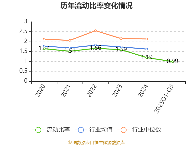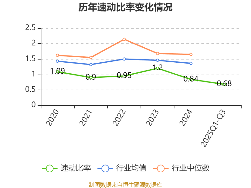 2025年前三季度,公司流动比率为0.99,速动比率为0.68。