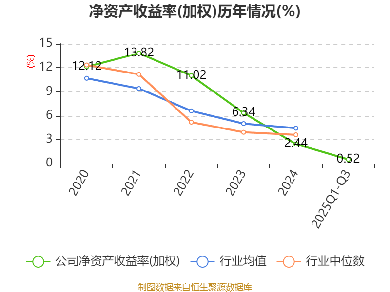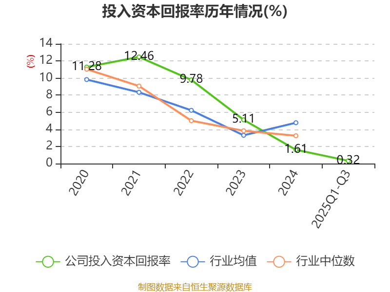 盈利能力方面, 2025年前三季度公司加权平均净资产收益率为0.52%,同比下降1.97个百分点。公司2025年前三季度投入资本回报率为0.32%,较上年同期下降1.54个百分点。