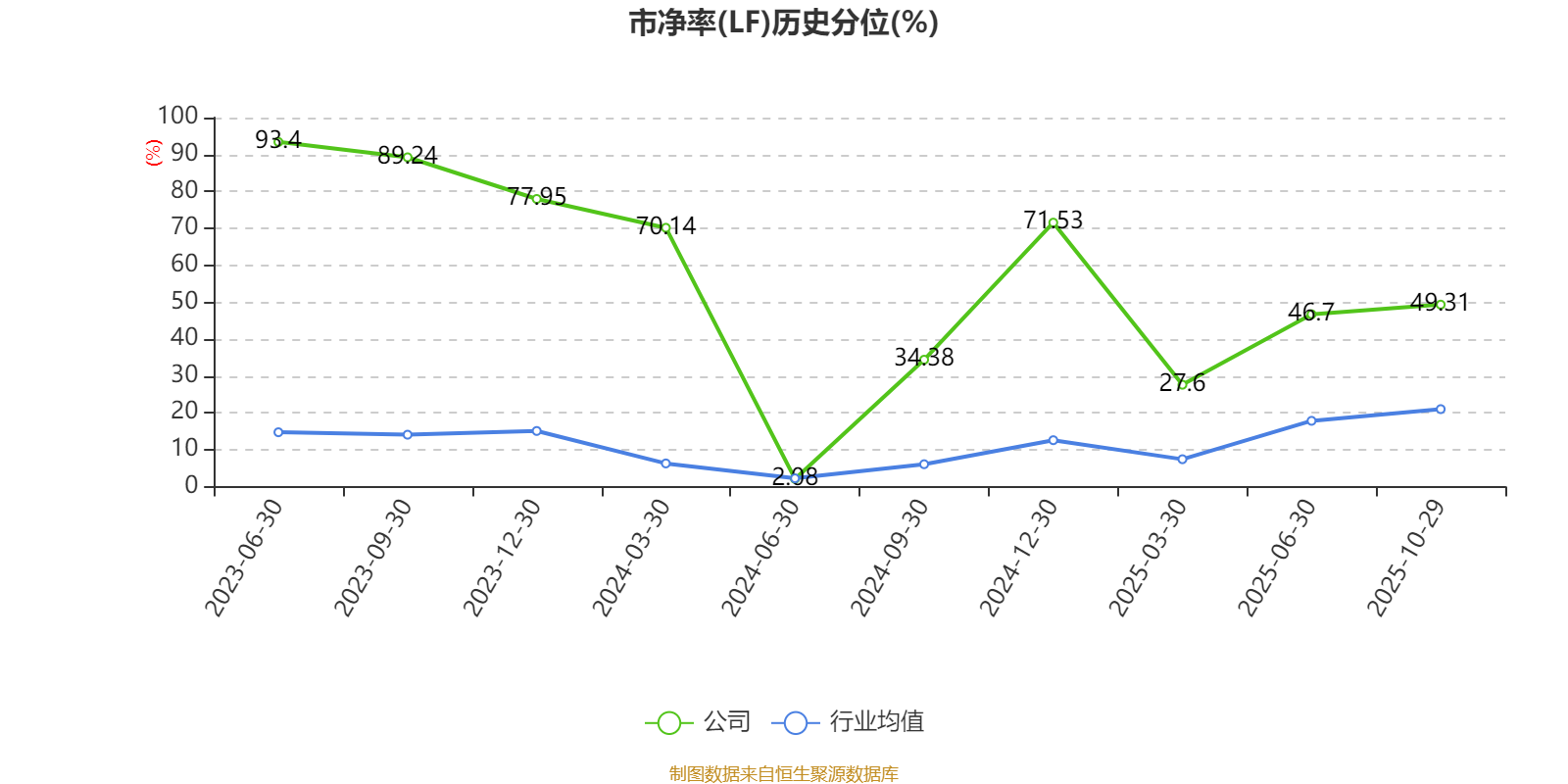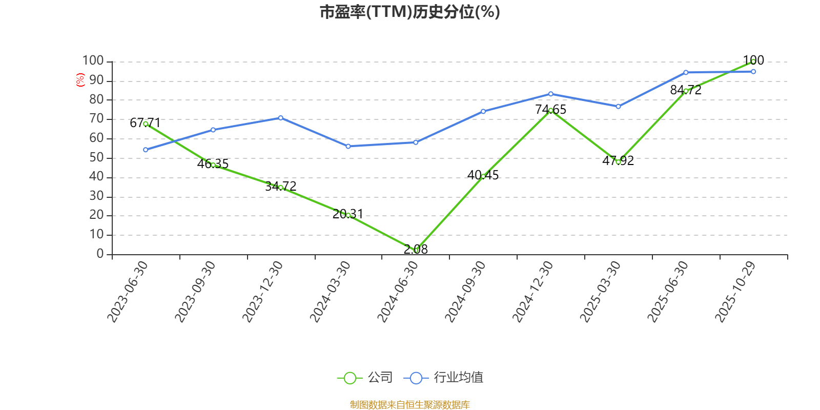 市盈率、市净率为负时,不显示当期分位数,会导致折线图中断。