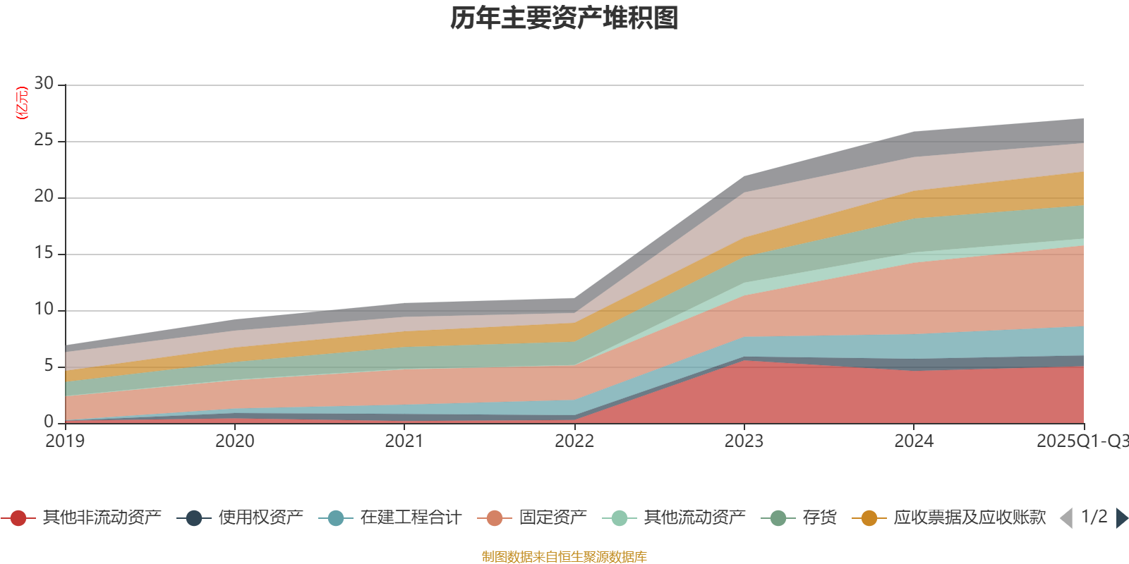 资产重大变化方面,截至2025年三季度末,公司货币资金较上年末减少15.79%,占公司总资产比重下降2.25个百分点;固定资产较上年末增加12.74%,占公司总资产比重上升1.94个百分点;应收票据及应收账款较上年末增加21.52%,占公司总资产比重上升1.55个百分点;其他流动资产较上年末减少33.02%,占公司总资产比重下降1.27个百分点。