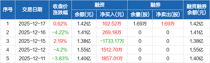 南王科技:融资净买入102.52万元,融资余额1.42亿元(12-17)