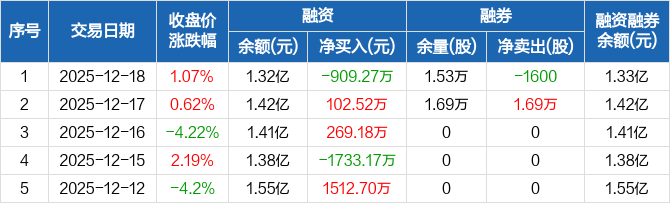 南王科技:融资净偿还909.27万元,融资余额1.32亿元(12-18)