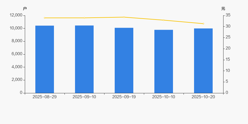 2025年8月29日至今,公司股东户数有所下降,区间跌幅为4.15%。2025年8月29日至2025年10月20日区间股价下降7.69%。