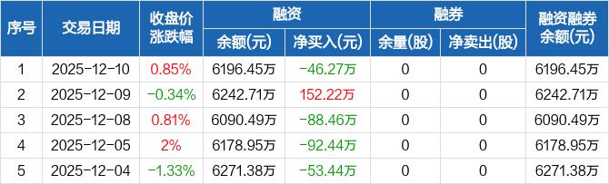 民爆光电:融资净偿还46.27万元,融资余额6196.45万元(12-10)