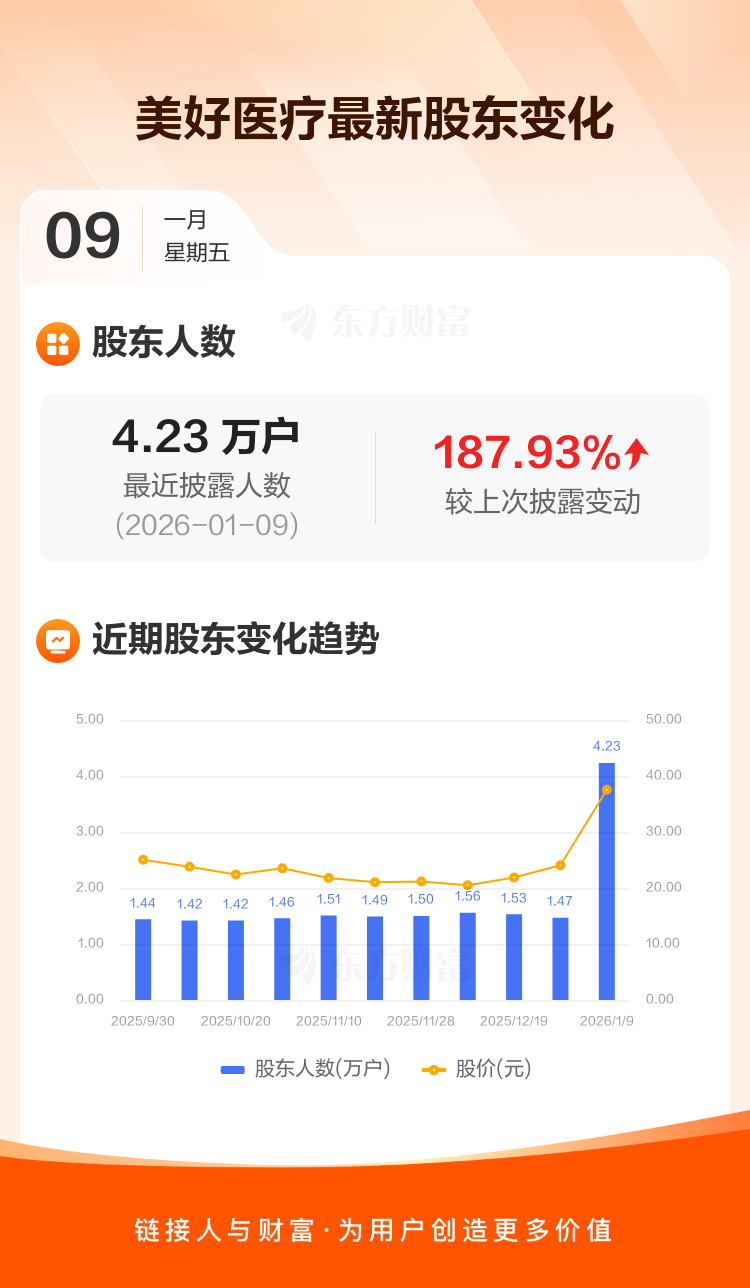 美好医疗:截至1月9日最新股东户数4.23万户,较上期增加187.93%