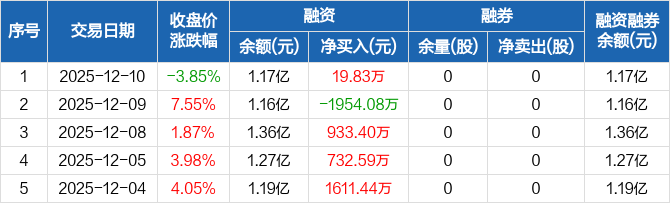 矩阵股份:融资净买入19.83万元,融资余额1.17亿元(12-10)