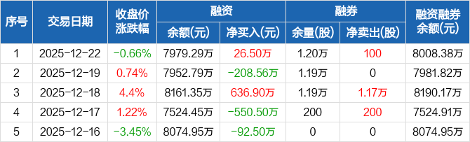 矩阵股份:融资净买入26.5万元,融资余额7979.29万元(12-22)