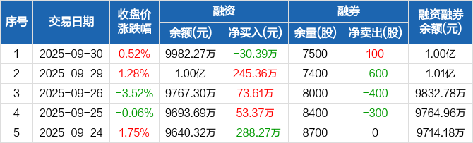 瑞迈特:融资净偿还30.39万元,融资余额9982.27万元(09-30)