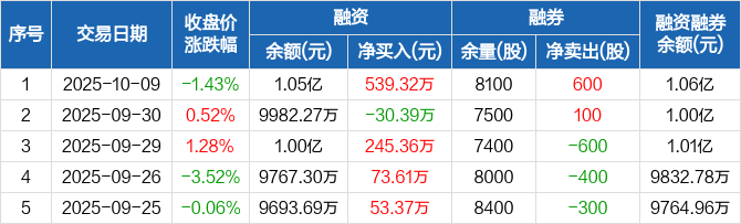 瑞迈特:融资净买入539.32万元,融资余额1.05亿元(10-09)