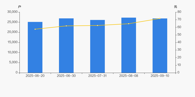 2025年6月20日至今,公司股东户数有所增长,区间涨幅为6.83%。2025年6月20日至2025年9月10日区间股价上涨24.57%。
